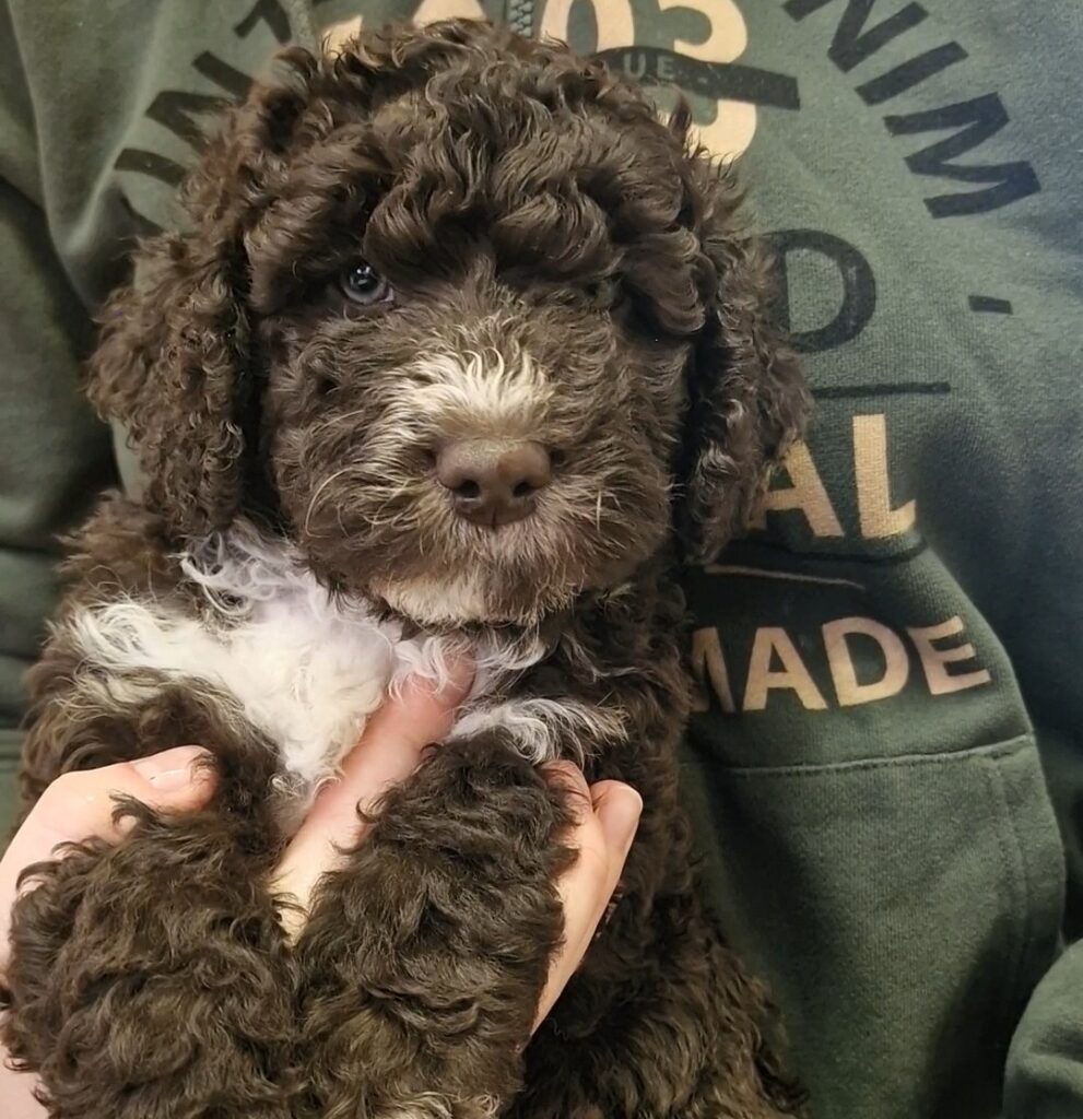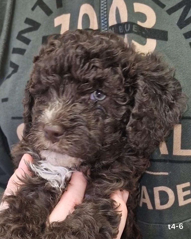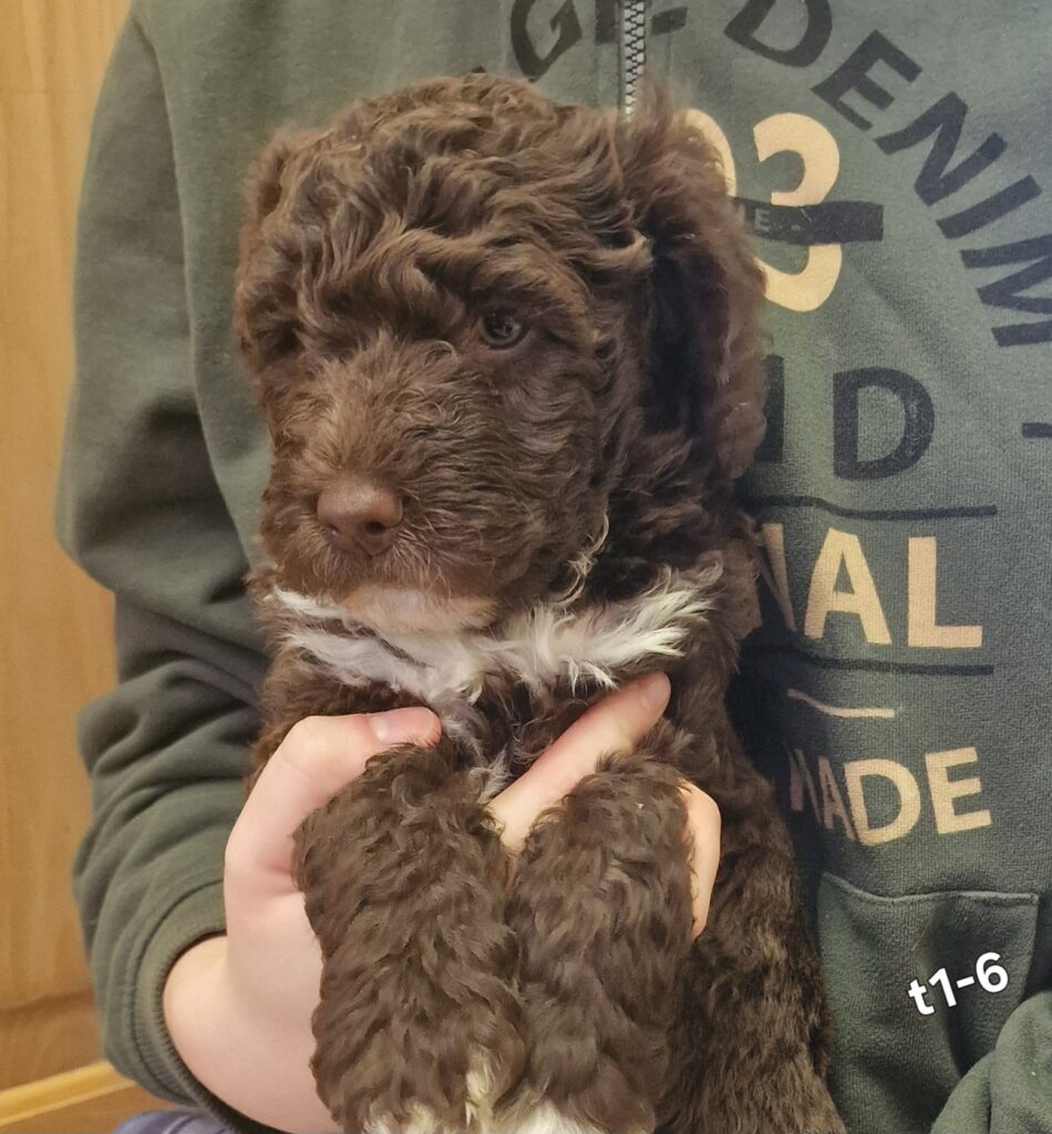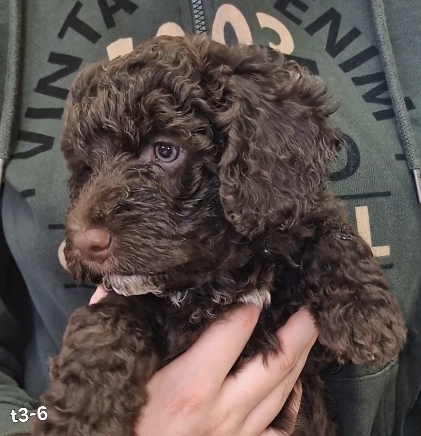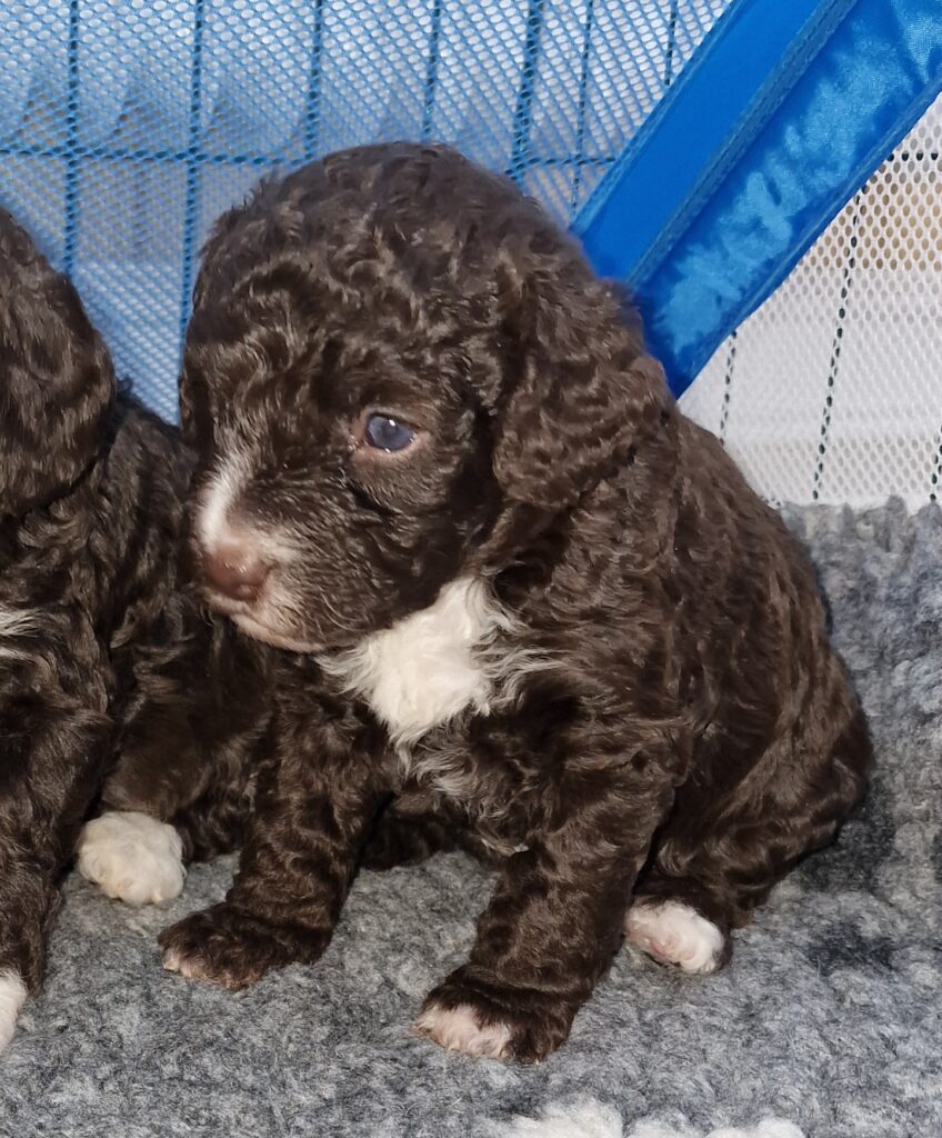 Denna kull är i alla fall väldigt trevlig, stabil och de är ständigt glada spanska vattenhundsvalpar. Så det är inte jättejobbigt att ha dem kvar. Det tar förstås tid med all sysselsättning som det kräver. De ska ju lära sej massor nu.