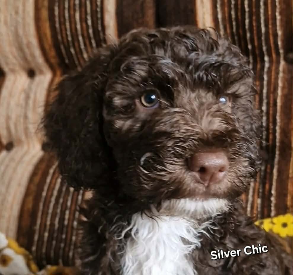 Silver Chic. Kvick, smart, väldigt smart, följsam, energisk. En mycket rolig tjej som kanske borde komma till någon som gillar att träna hund